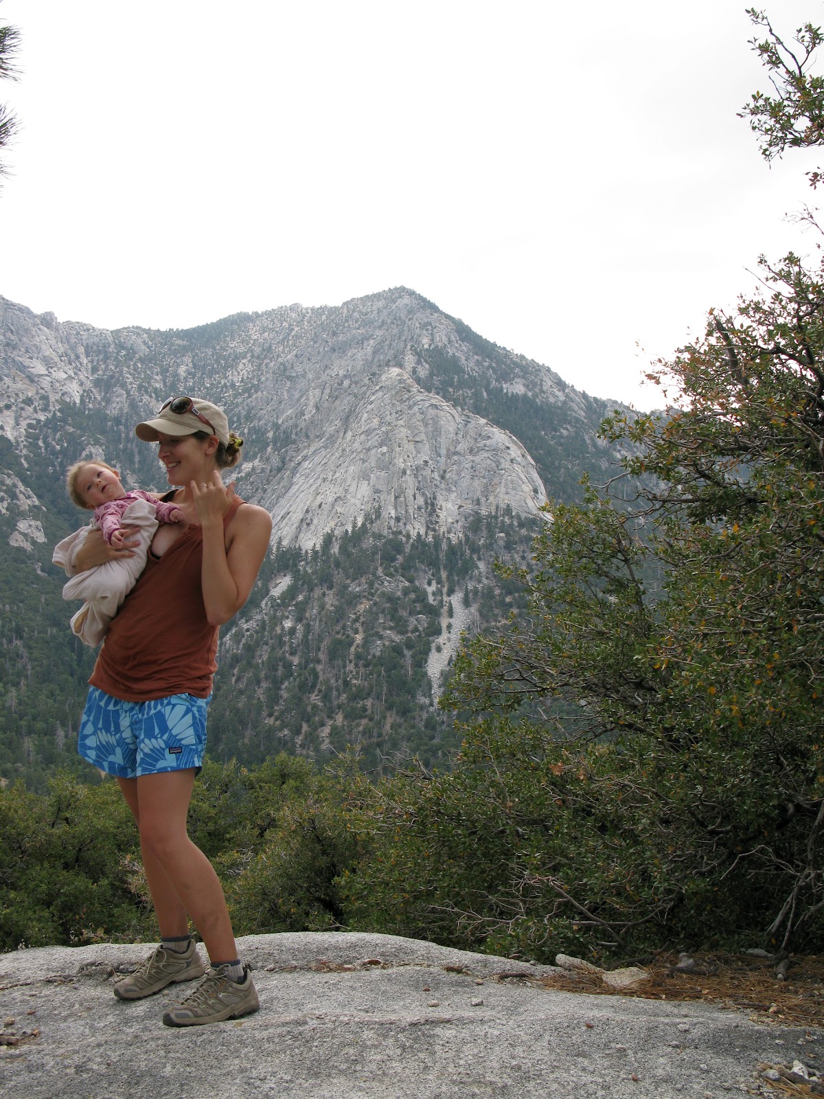I hike with her in a Beco carrier and Daniel sherpas all of the extra crap we now need for her in his pack. We have an awesome pop-up tent for her called a peapod that we bring, and we set it up wherever we stop to hang out for a bit.